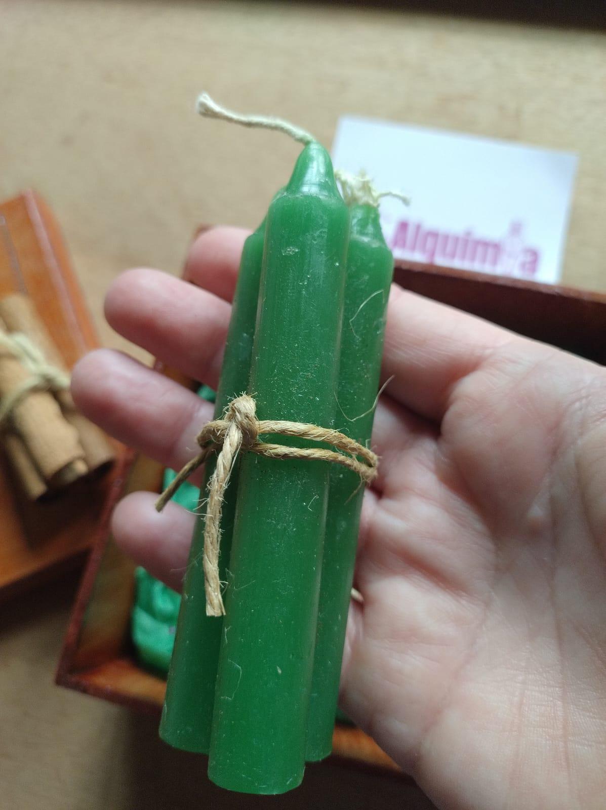 Velas verdes – símbolo da cura, estabilidade e conexão com a natureza.